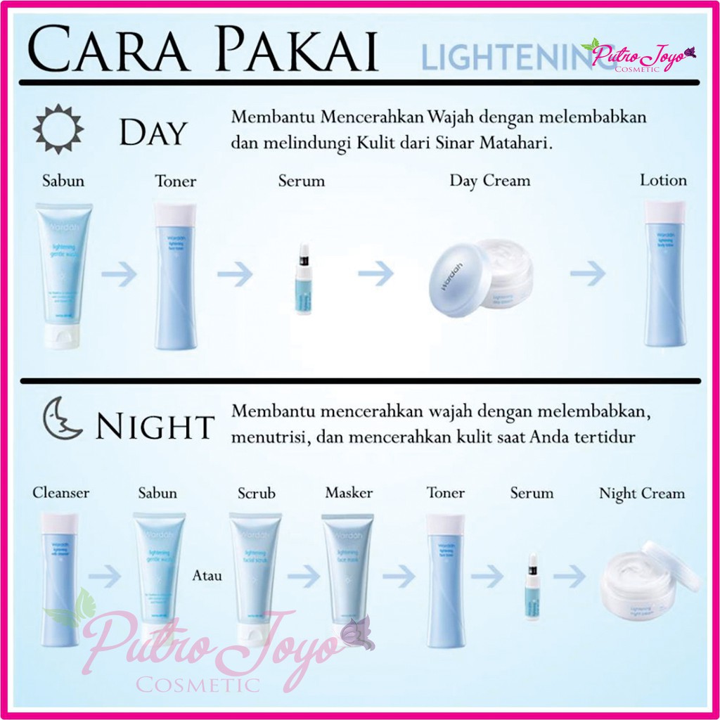 Bersihkan wajah (pada malam hari) dengan menggunakan wardah . Cara pemakaian wardah lightening day 2. Wardah lightening series dan urutan pemakaian skin care yang benar. Dulu, produk wardah lightening series masih menggunakan step 1 dan . Lihatlah hasilnya dalam pemakaian 1 bulan, wajah akan tampak lebih cerah dan sehat.
